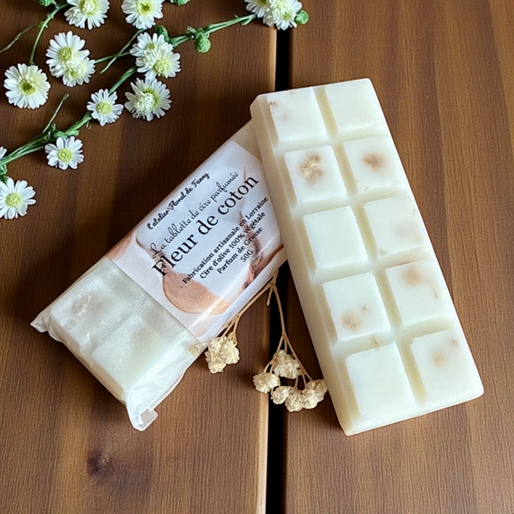 Confectionnées à partir de cire végétale d’olive, nos tablettes fondantes parfumées sont le fruit d’un savoir-faire artisanal associant fragrances de Grasse et fleurs séchées. Chaque tablette est composée de plusieurs carrés sécables, faciles à doser selon l’intensité de parfum souhaitée.
