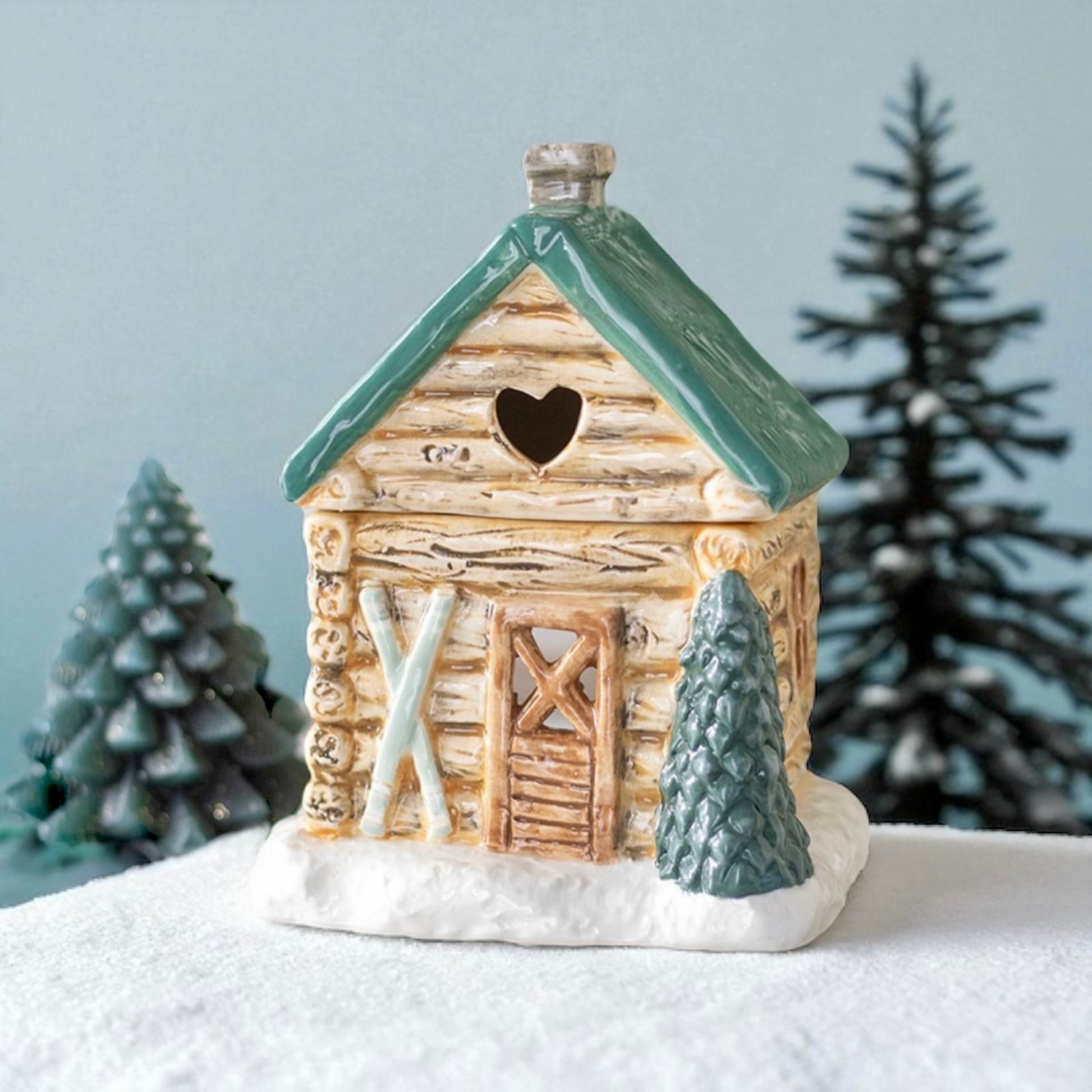 Ce joli brûleur en forme de chalet d’hiver invite à la douceur et à l’évasion.
