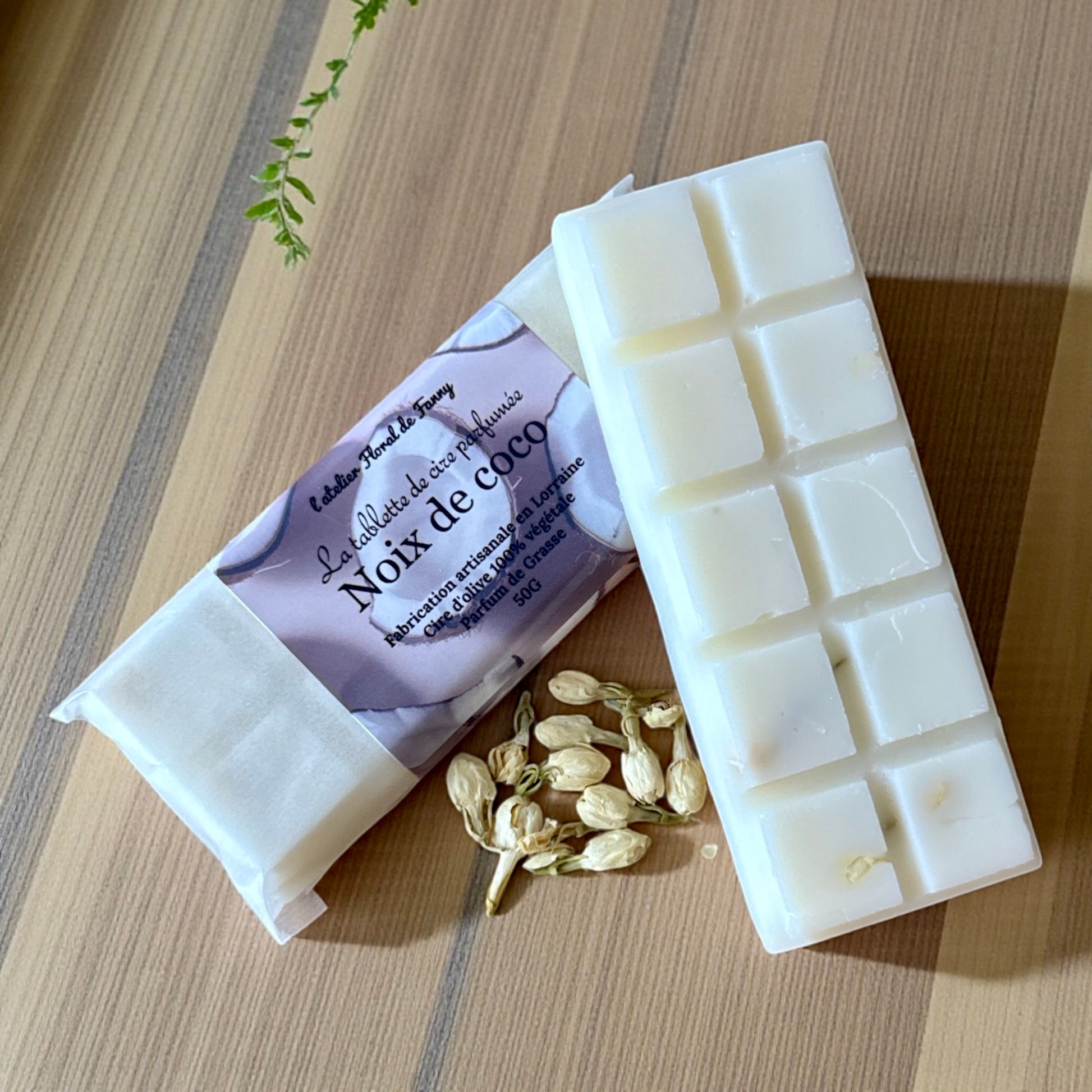 Confectionnées à partir de cire végétale d'olive, nos tablettes fondantes parfumées sont le fruit d'un savoir-faire artisanal associant parfums de Grasse et fleurs séchées. Chaque tablette est composée de plusieurs carrés sécables, faciles à doser selon l'intensité de parfum souhaitée.