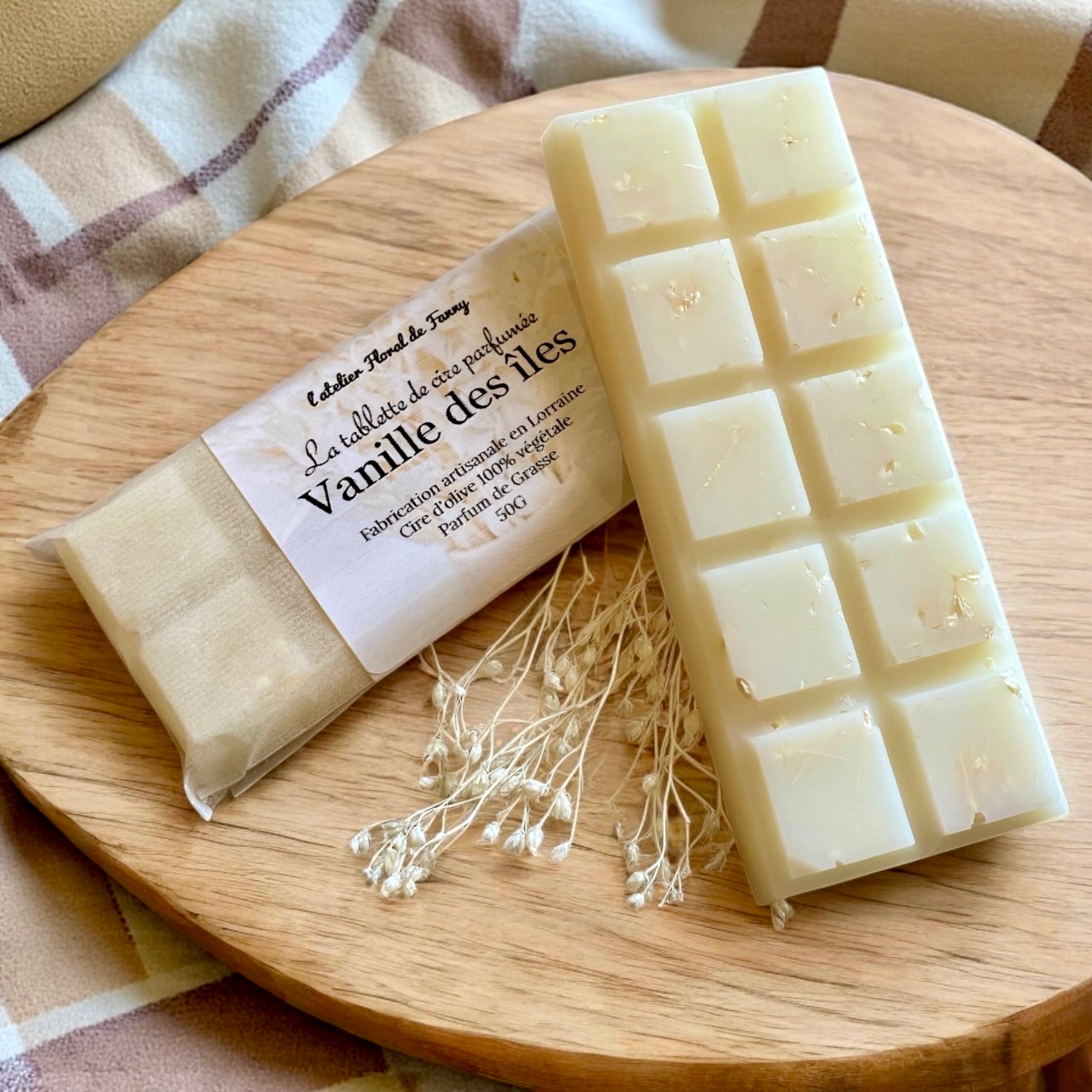 Confectionnées à partir de cire végétale d’olive, nos tablettes fondantes parfumées sont le fruit d’un savoir-faire artisanal associant fragrances de Grasse et fleurs séchées. Chaque tablette est composée de plusieurs carrés sécables, faciles à doser selon l’intensité de parfum souhaitée.